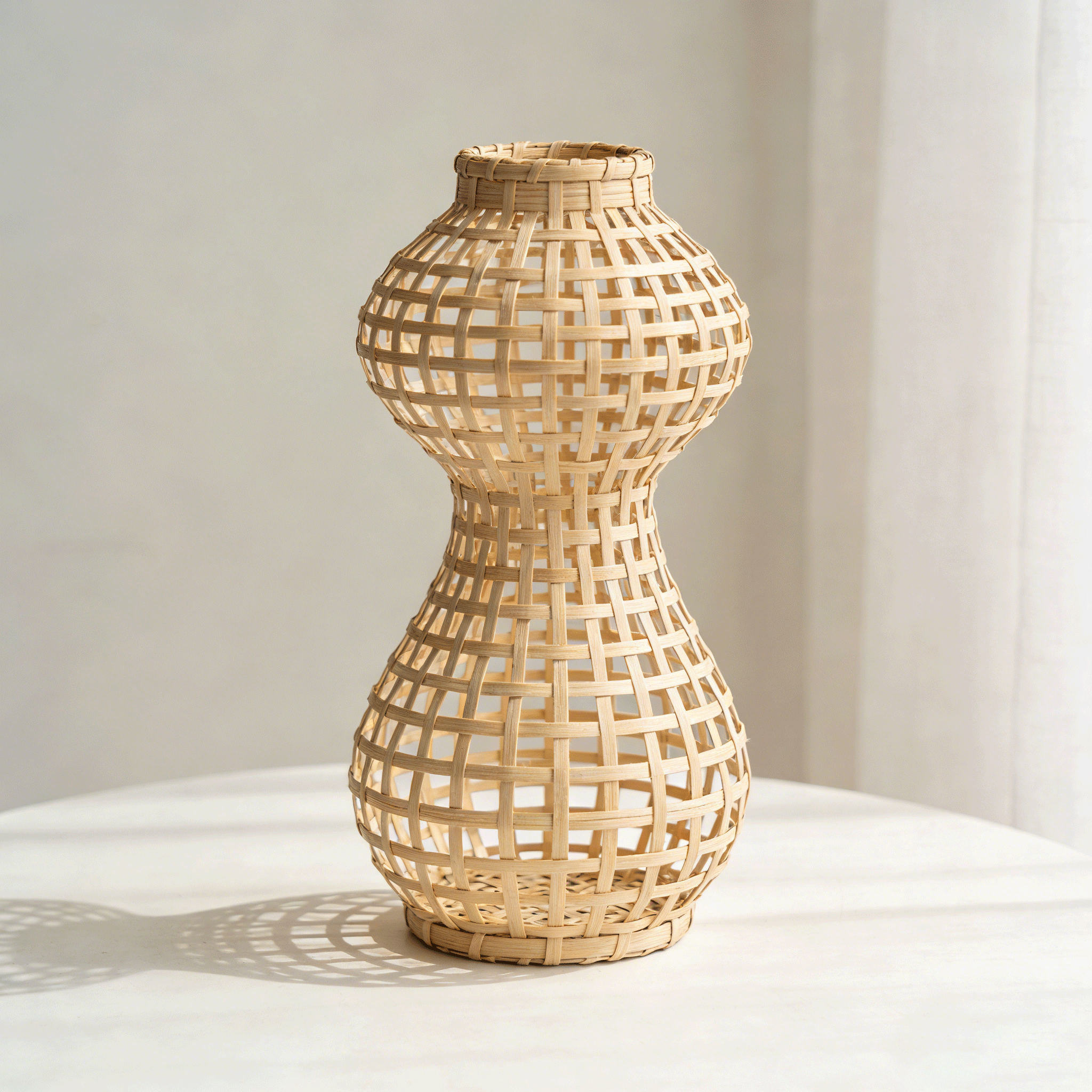 โคมไฟตั้งโต๊ะสไตล์วินเทจหวายทำมือ